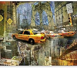murando Papier peint intissé 400x280 cm Décoration Murale XXL Poster Tableaux Muraux Tapisserie Photo Trompe l'oeil Collage New York ville Taxi d-A-0033-a-d