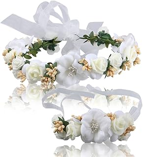 Ssowun Couronne de Fleurs et Fleur Poignet Bande,Fletion Fleur Bandeau de Mariage Cheveux Bandes Accessoires Filles Bohème Garland ÉTé Plage Couronne Festival Bandeau