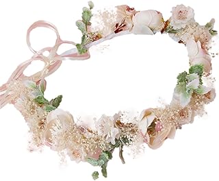 Wohlstand Bandeaux cheveux vignes,Mariage Floral Bandeau 35.5 * 1.5cm,serre-tête de vigne,Femmes fleur bandeau avec ruban, Couronne de mariage guirlandes couronne couronne florale