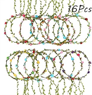 FEPITO 16 Pcs Fleur Couronne Fleur Bandeau Guirlande Floral Couronne Bandeau pour Festival De Mariage Accessoires De Cheveux