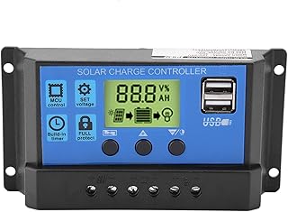 Akozon Contrôleur de charge solaire PWM Intelligent Régulateur de contrôleur de charge de panneau solaire Écran à cristaux liquides Dual Post Auto