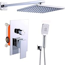 OLEAH Mitigeur de douche encastré salle de bain Carré Robinet manuel simple niveau de contrôle en laiton massif et Encastrement douche de tête luxe Ultra Slim pluie Pommeau Douche,Finition Chrome
