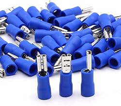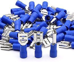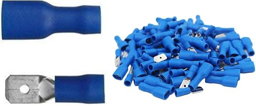 Shentian Cosses de câble x 100 – Fiche plate bleue x 50 / cosses plates bleues x 50 – Dimensions enfichables : 6,3 mm, connecteurs à sertir, isolés – Pour voiture, électronique et loisirs