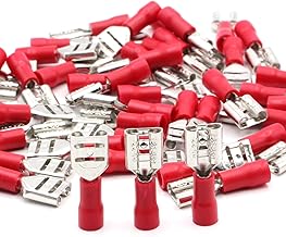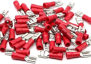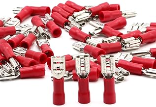 Lot de 25 fiches plates femelles rouges 0,5-1,5 mm2 Largeur 6,3 mm Isolation partielle PVC Connecteur de câbles Cosses de câbles Connecteur en laiton étamé