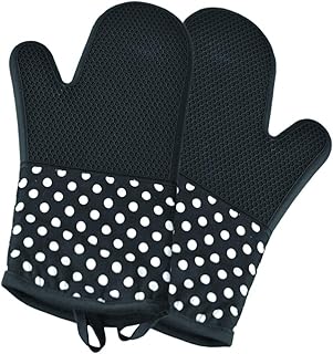 ATUIO - Gants de Four, Gants de Cuisine Résistants à la Chaleur, Gants de Cuisine Antidérapants pour [Grille][Cuisine][Pâtisserie][Barbecue], Gants de Four Coton Doublure, [Noir][1 Paire]