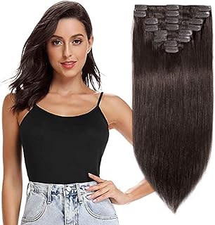 Extension a Clip Cheveux Naturel - Rajout Vrai Cheveux Humain Lisse Soyeux - 8 Bandes pour Cheveux Fin à Moyen - #02 CHATAIN FONCE (40cm-90g)