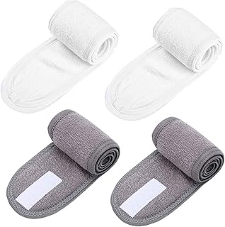 4X Bandeau Cheveux Bandeau de Maquillage Bandeau Maquillage Lavable Bandeau Serre-Tête Pour Spa Yoga Sport Se Maquiller Soins du Visage, Blanc/gris