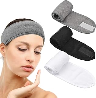 3 Pcs Bandeau Maquillage Cheveux, Masque Bandeau, Bandeau Cheveux Femme Maquillage pour Maquillage Serre-Tête Scratch Magique Pour Spa Yoga Sport Se Maquiller Soins du Visage (Noir, Blanc, Gris)