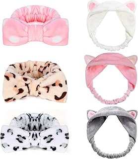 Joinfun 6 Pièces Bandeau Cheveux Elastique Serre Tete Maquillage oreilles de chat bandeaux Arc Cosmétique bandeaux douche spa visage lavage bandeau Pour Les Femmes Bande facial Maquillage