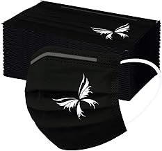 50 Pièces Adulte Masque Jetable Noir (3 Couches), Masque Imprimé Respirable Papillon Dessin Animé Chat Chien, Le Masque De Bon Confort Masque Halloween Écharpe bandana