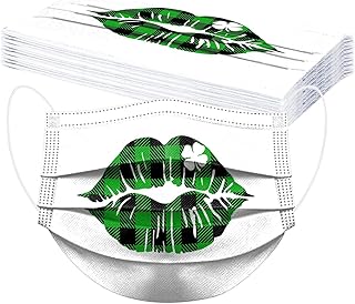 Soolike 50 Pièces Adulte Jetable 3 Couches Respirant Imprimé Protection Faciale, Doux Et Confortable Écharpe Bandana Couverture, Earloop Bouche De Visage pour Homme Femme (E)